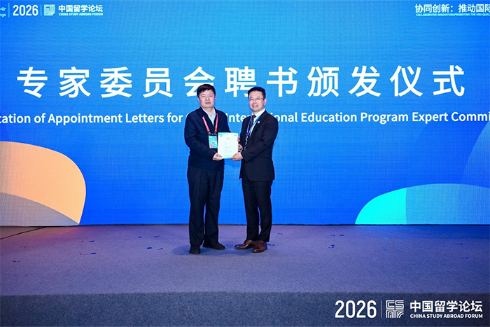 同期,论坛举行专家委员会聘书颁发仪式,正式组建由中外教育专家及行业学者组成的专业智库。孙武军受聘为专家委员会副主任委员,跨境教育中心主任丁晓玉受聘为项目专家委员。
